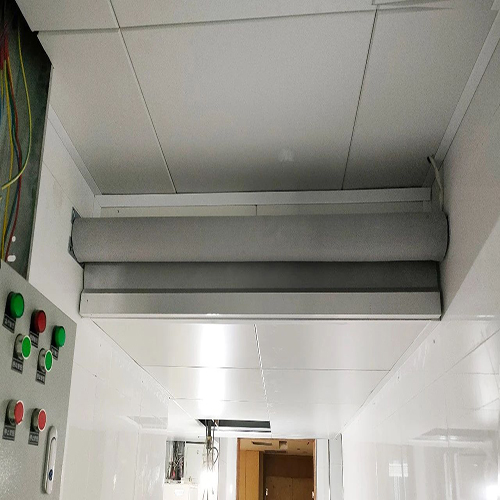 電動擋煙垂壁是擋煙垂壁中一款可以與消防聯(lián)動的擋煙垂壁。由防火硅膠布、卷軸、電機、底梁、控制器組成,當發(fā)生火災時,電動擋煙垂壁接收到信號后,自動下降至工作位置進行擋煙蓄煙。