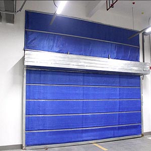消防聯(lián)動電動控制下降:消防控制中心的控制系統(tǒng)打開火區(qū)防火卷簾的電源,使火區(qū)防火卷簾以設(shè)定的速度下降到地面。
