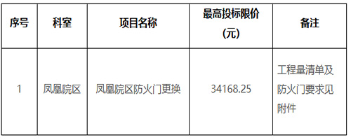 遵義市第一人民醫(yī)院鳳凰院區(qū)防火門更換采購公告(工程)
