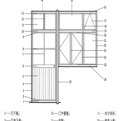 1.《門(mén)窗術(shù)語(yǔ)》349條:連窗門(mén):帶有窗的門(mén)。(個(gè)人注:地標(biāo)稱門(mén)連窗) 門(mén)窗組合圖: