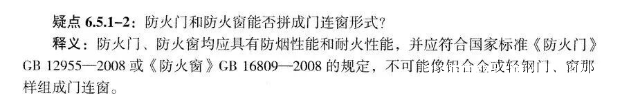 2.《建規(guī)指南》P342:防火門(mén)、防火窗均應(yīng)具有防煙性能和耐火性能,并應(yīng)符合國(guó)家標(biāo)準(zhǔn)《防火門(mén)》《防火窗》的規(guī)定,不可能像鋁合金或輕鋼門(mén)、窗那樣組成門(mén)連窗。